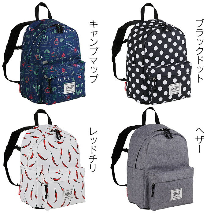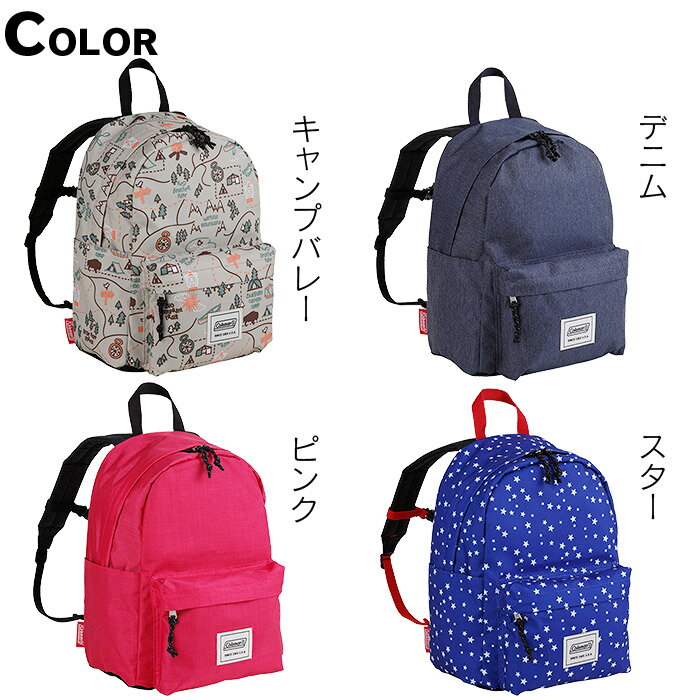 ギフト対応 Details ■Brand Coleman コールマン ■Item C-キッズパック 11L リュックサック キッズ ■Size 約26×13×15cm ■Color ・キャンプバレー(2000032959) ・デニム(200032960) ・ピンク(2000032961) ・スター(200032962) ・キャンプマップ(2000032963) ・ブラックドット(2000032964) ・レッドチリ(2000032965) ・ヘザー(2000032966) ■重量 約310g前後 ■容量 約11L ■素材 ナイロン/ポリエステル ■Spec フロントファスナーポケット×2 両サイドにポケット メイン収納(内部に差込ポケット、ネームタグ) チェストベルト付き Comment コールマン C-キッズパック ミニ 幼稚園児や小学生の遠足やお出かけにお勧め♪